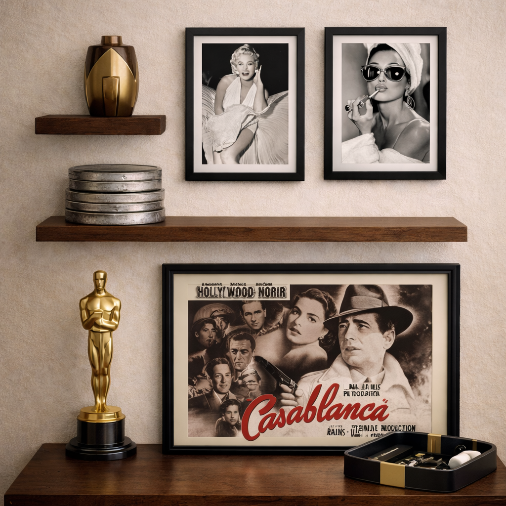 Hollywood Noir draws from classic cinema and Art Deco influence, where lighting, material, and composition do the work.