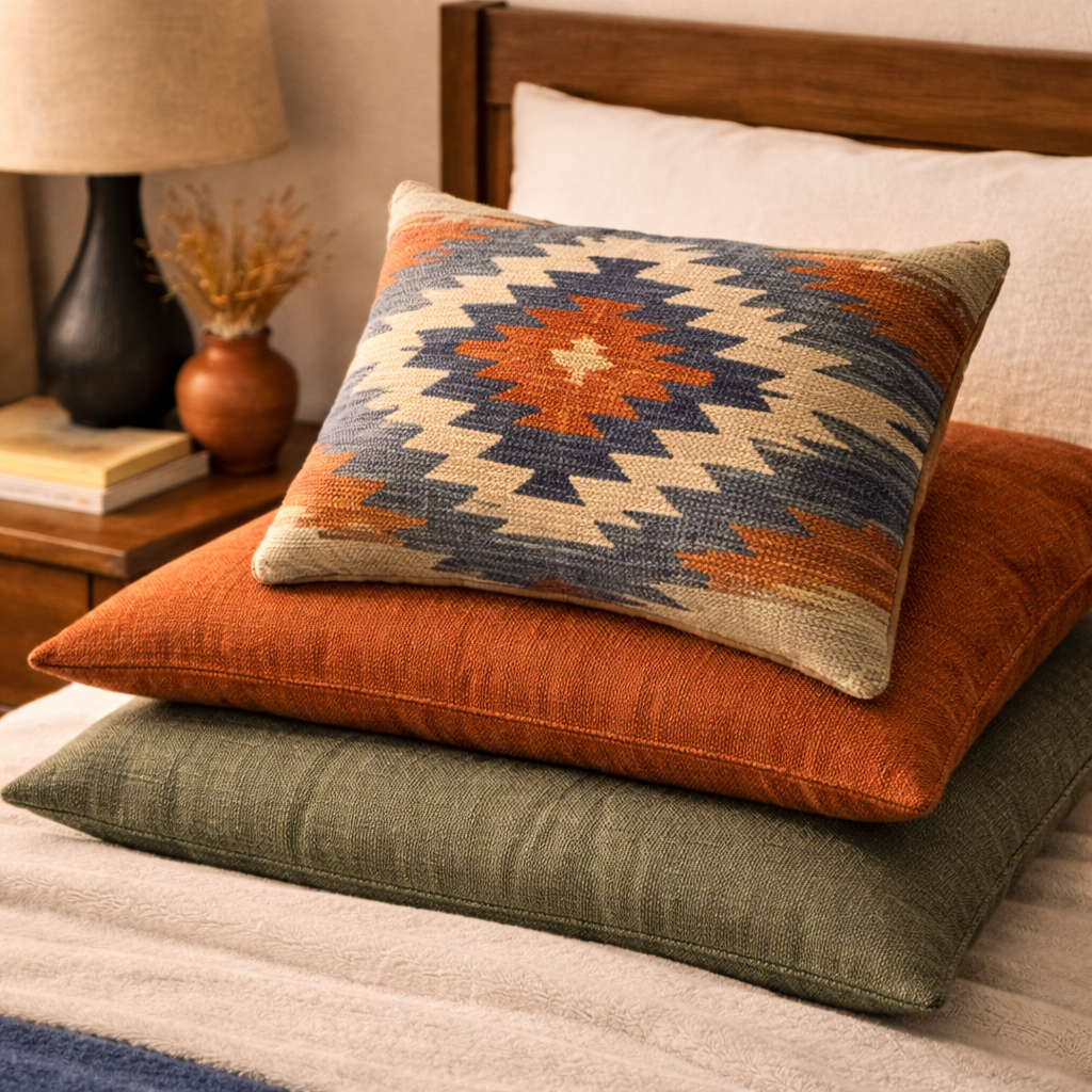 Layered Linen and Geometric Pillow Covers